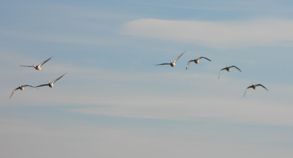 7 Oies à tête barrée au-dessus de l’étang du Canet