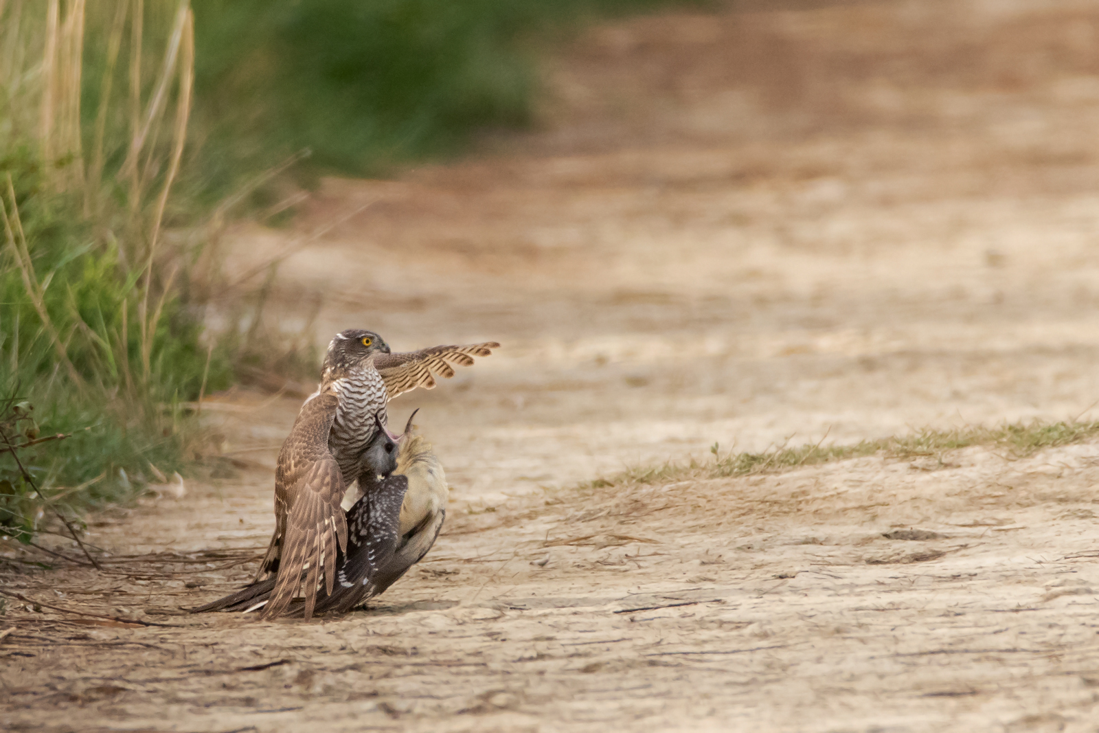 Épervier d’Europe femelle ayant attrapé un Coucou geai
