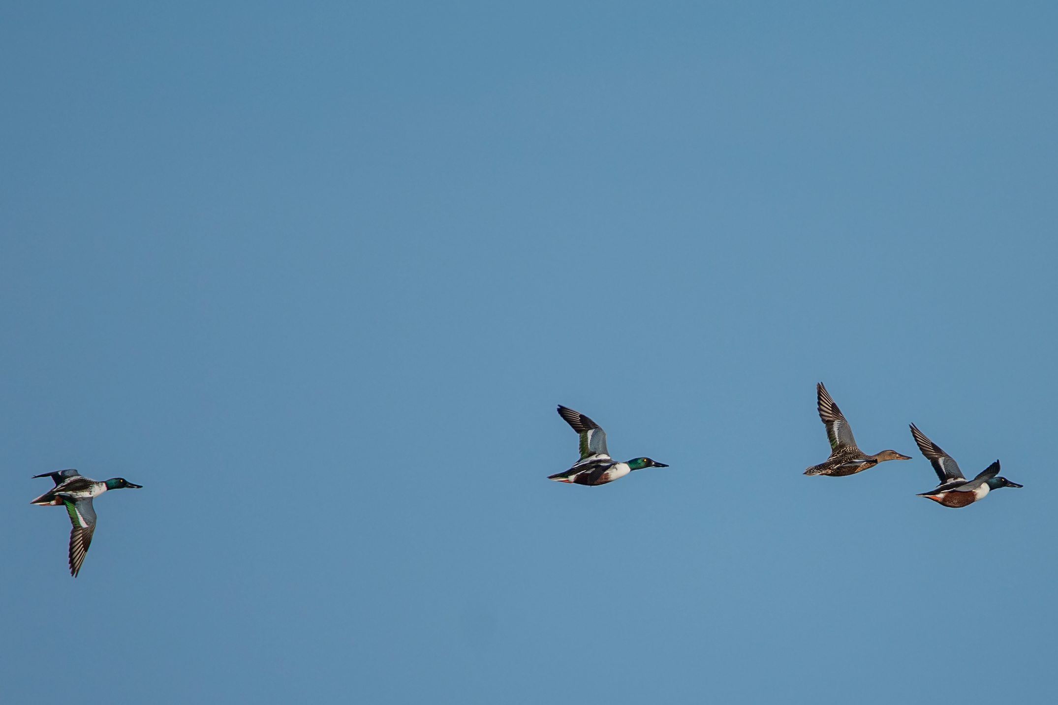 Photo prise en janvier 2022 par Michel Leroux dans le réserve naturelle nationale du domaine de Beauguillot (lire La baie des Veys (Manche), une zone humide méconnue). Le mâle de ce couple présente une zone vert foncé plus ou moins étendue derrière l'œil et sur la gorge, un point rarement évoqué dans les guides d'identification, et qui rappelle la bande verte de la tête du Canard d'Amérique ou à front blanc (M. americana).