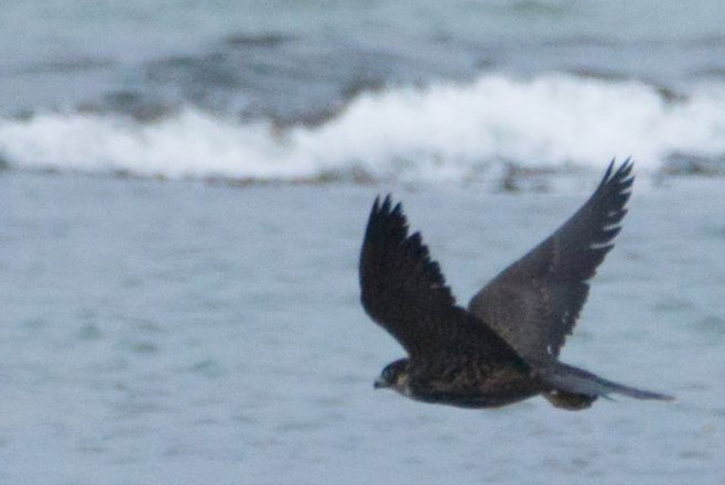 Photo : Dominique Robard. Probable immature. A tué et mangé un Tournepierre à collier ! Observation en compagnie de Bernard Thibeaud et de Manu Gas. Lire Des Faucons d'Eléonore sur le littoral atlantique français en août 2012.