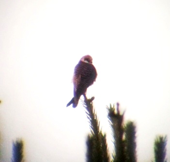 Photo prise le 2/06. Passage de l'oiseau vers 21 h 45, arrive depuis le Sud, se pose 15 minutes au sommet d'un pin et repart. Photo éclaircie.