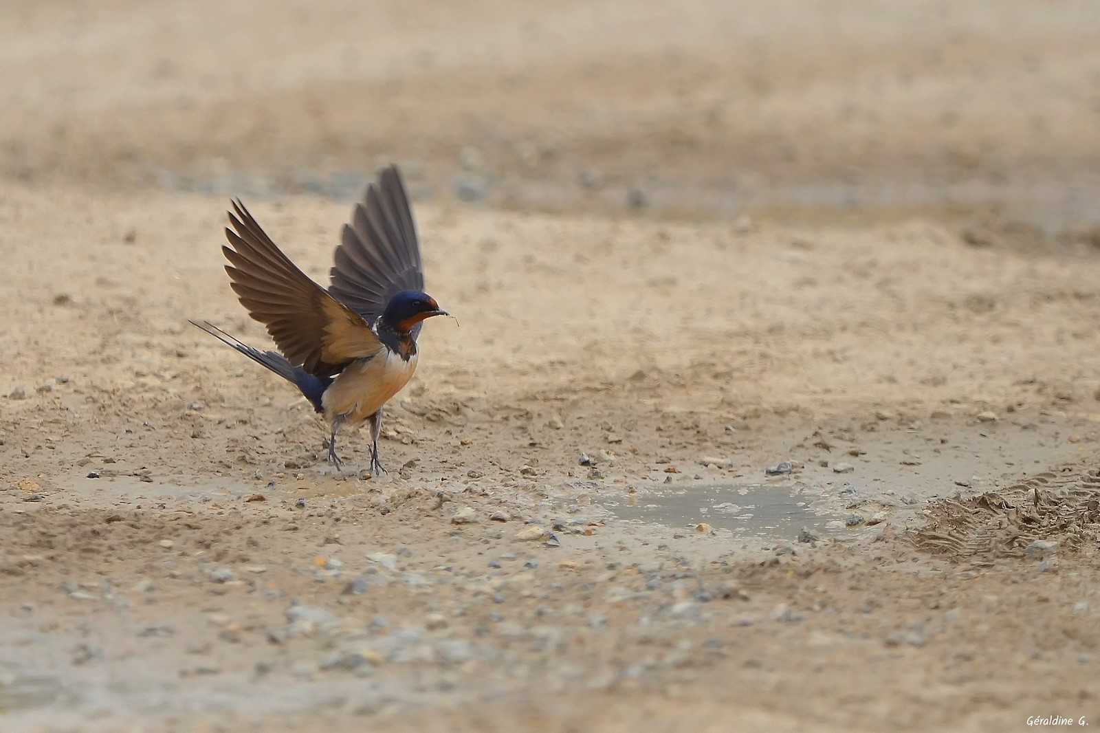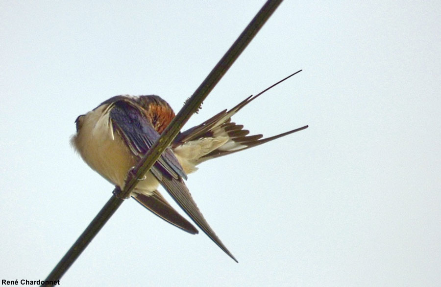 Hirondelle rustique se toilettant