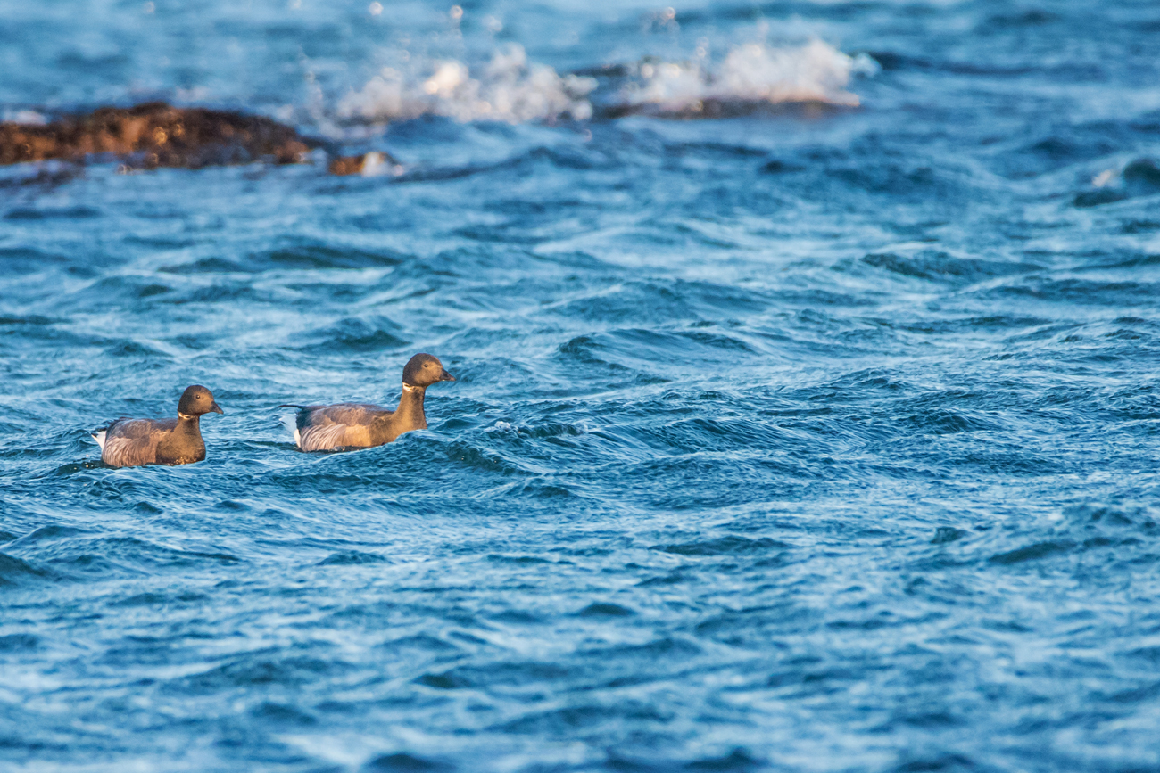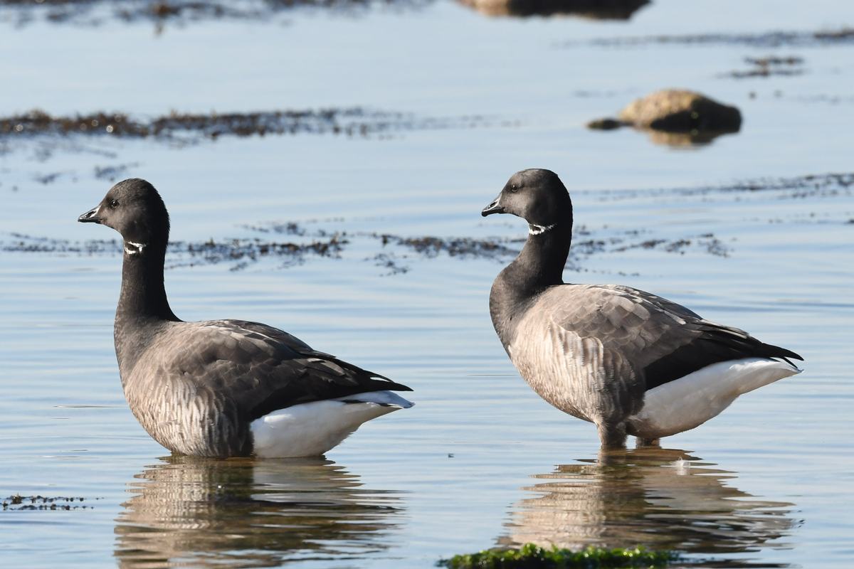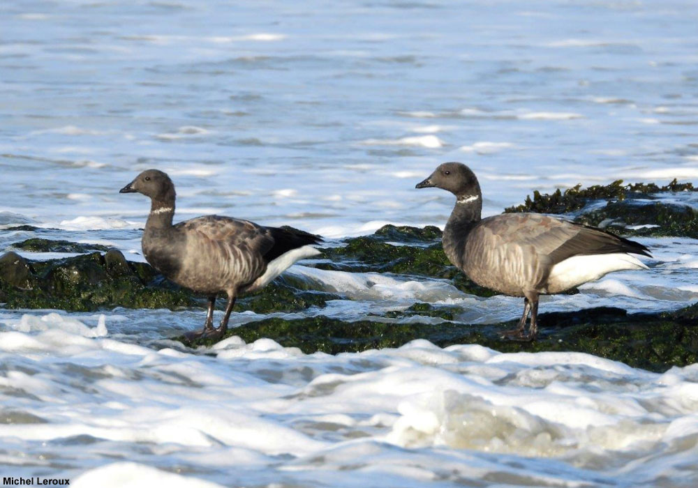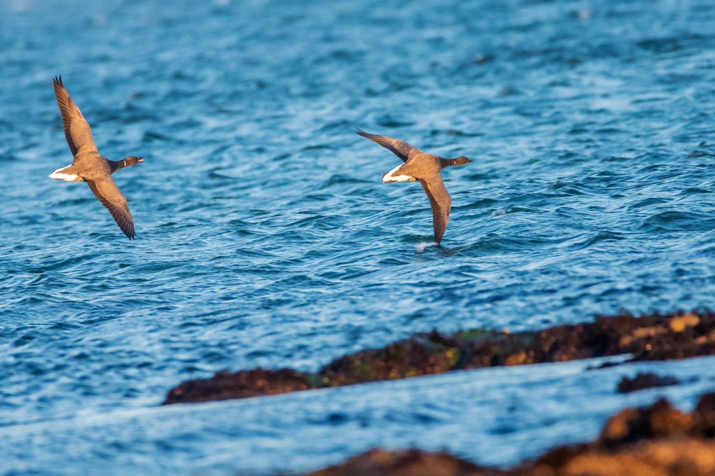 Photo prise le 26/02/2020. Bernaches cravants passants au dessus de Tadornes de Belon.