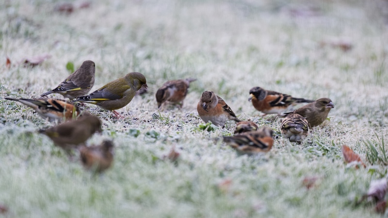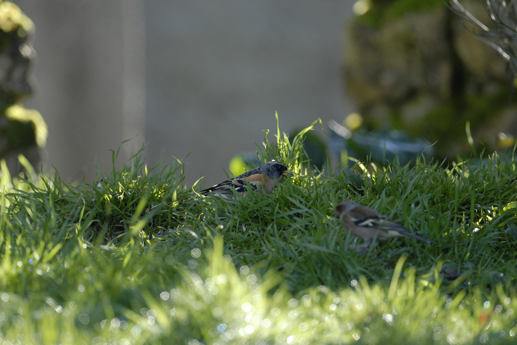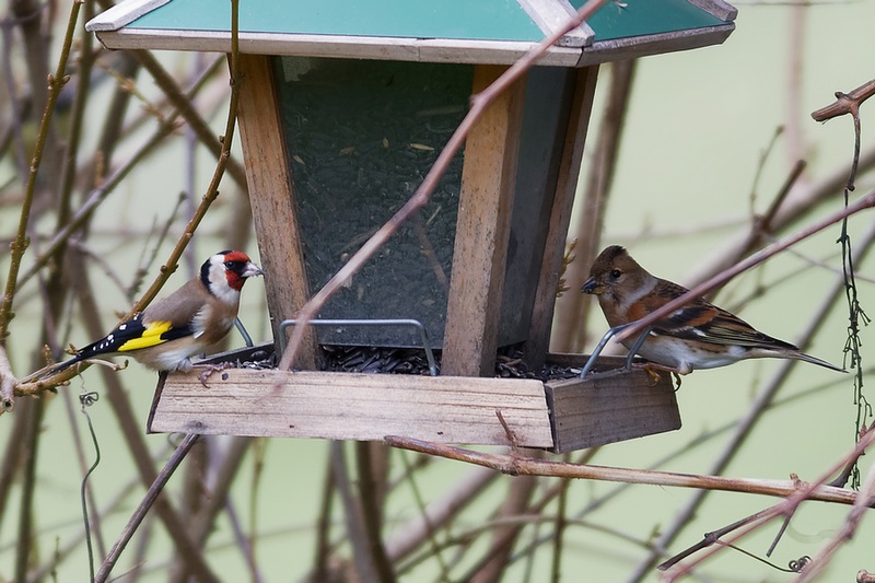 Pinson du Nord et Chardonneret élégant à la mangeoire