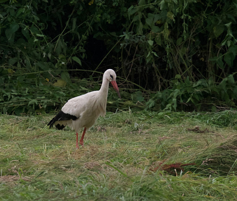 Photo prise le 19/06/2018. Vue cherchant sa nourriture dans une prairie fauchée et à proximité de lignes HT.