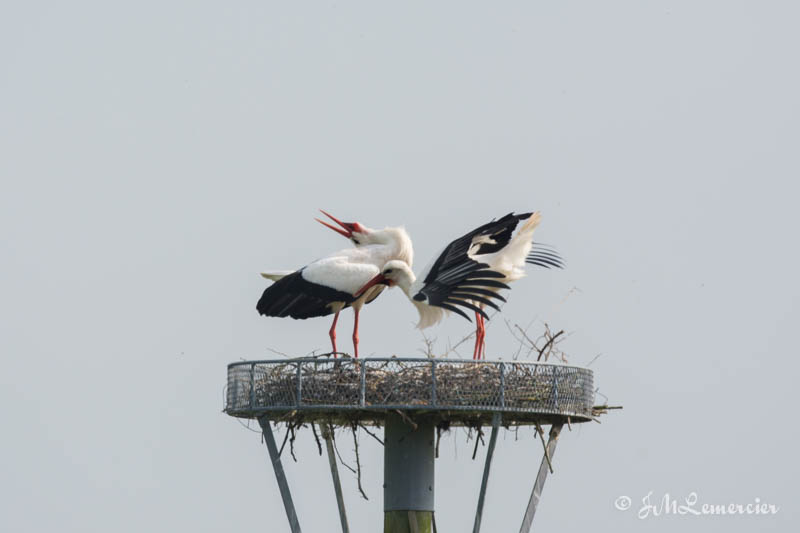 Photographie prise par Lemercier Jean-Marc. Le printemps est là : les cigognes sont de retour depuis quelques jours dans les marais du Cotentin. Photo prise le 22/03/2019. Visitez mon site web "Jean-Marc Lemercier photographies".