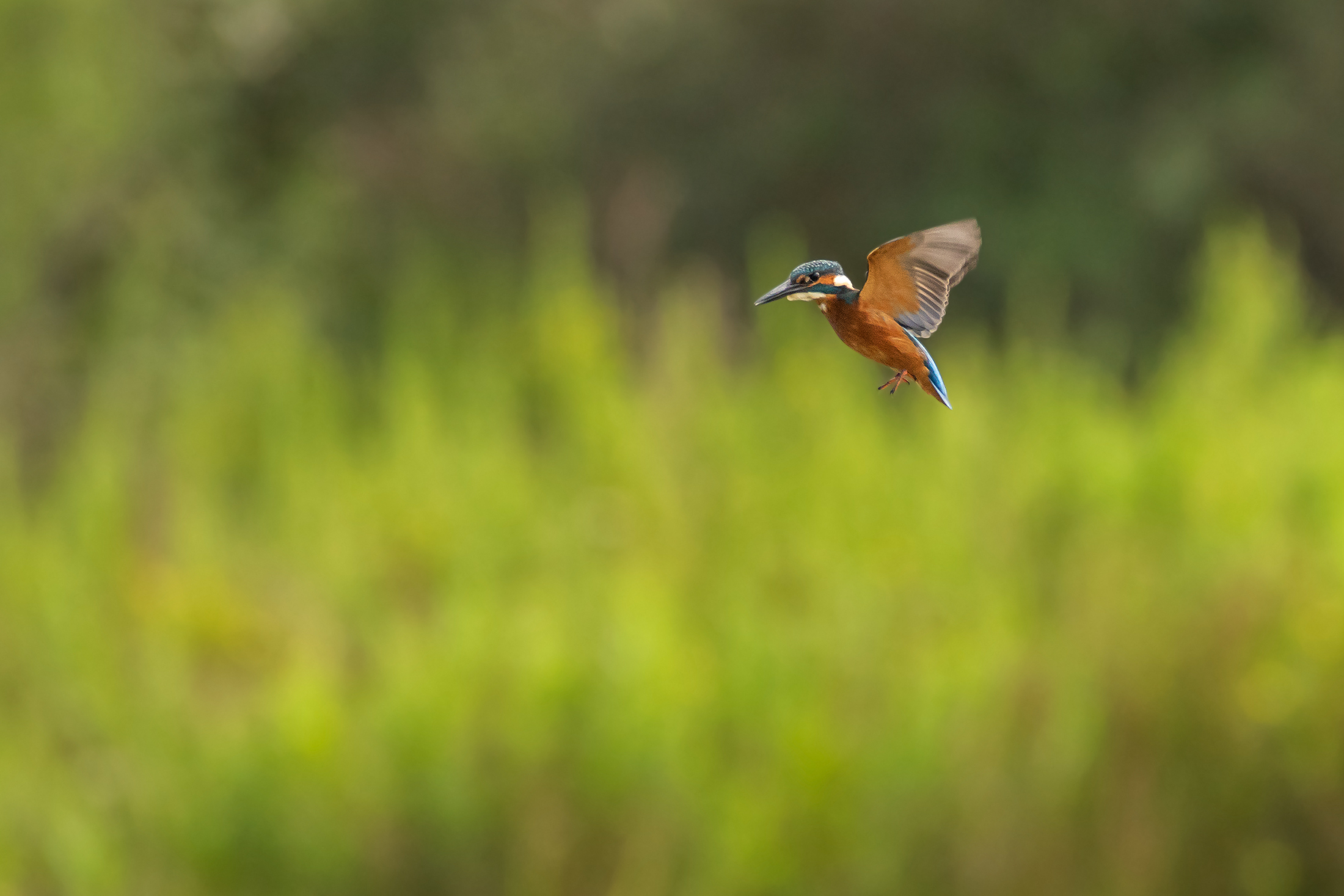 Vol stationnaire d’un Martin-pêcheur d’Europe mâle