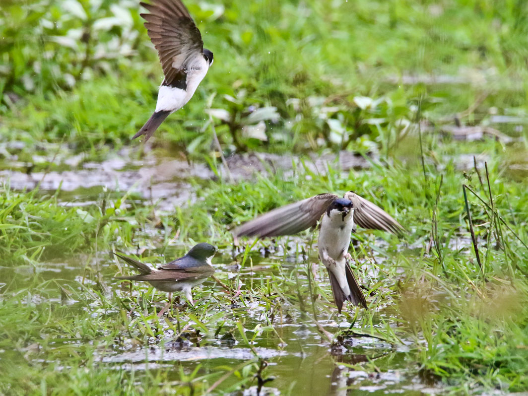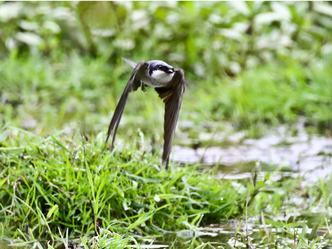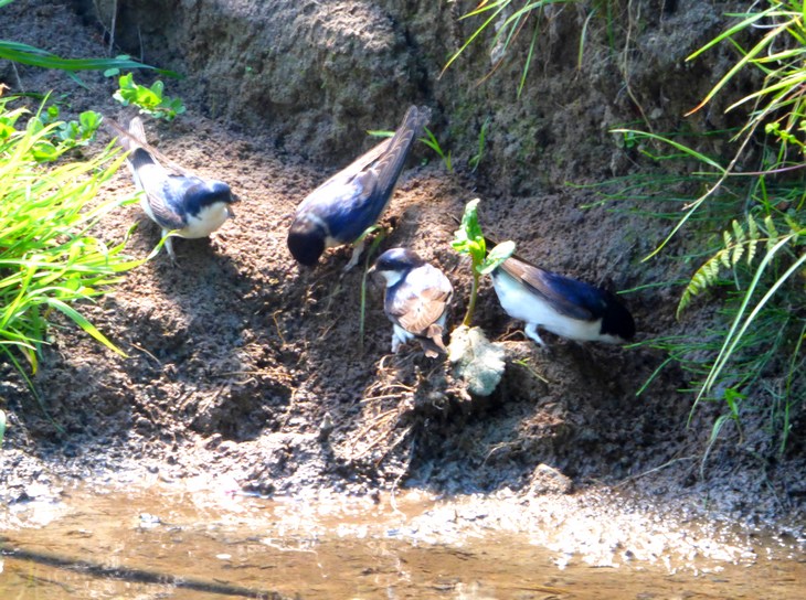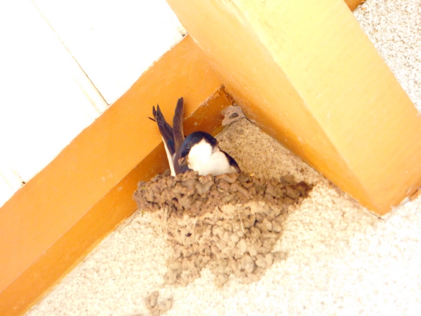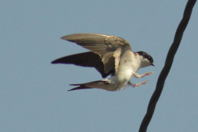 Photo prise le 20/05/2017. C'est la période de la construction des nids et c'est un va et vient incessant entre le futur nid et les berges de la rivière pour y récolter le mortier de construction.