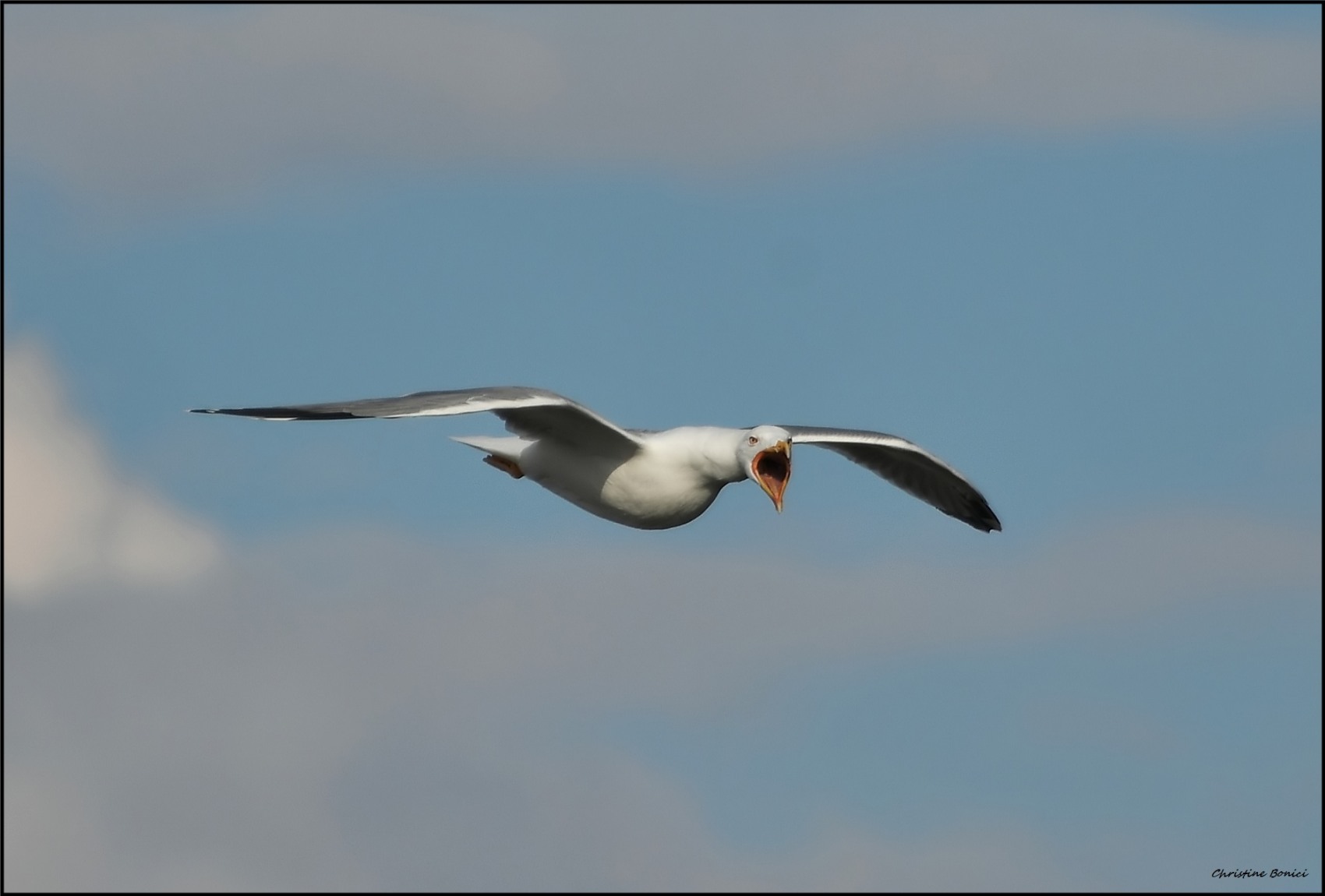 Hier le vent soufflait beaucoup à Palavas, et ce goéland s'amusait à planer .