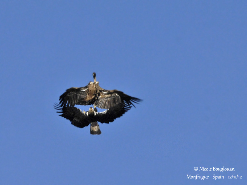 Aigle ibérique se battant contre un Vautour fauve (parc national de Monfraguë) | Nicole Bouglouan