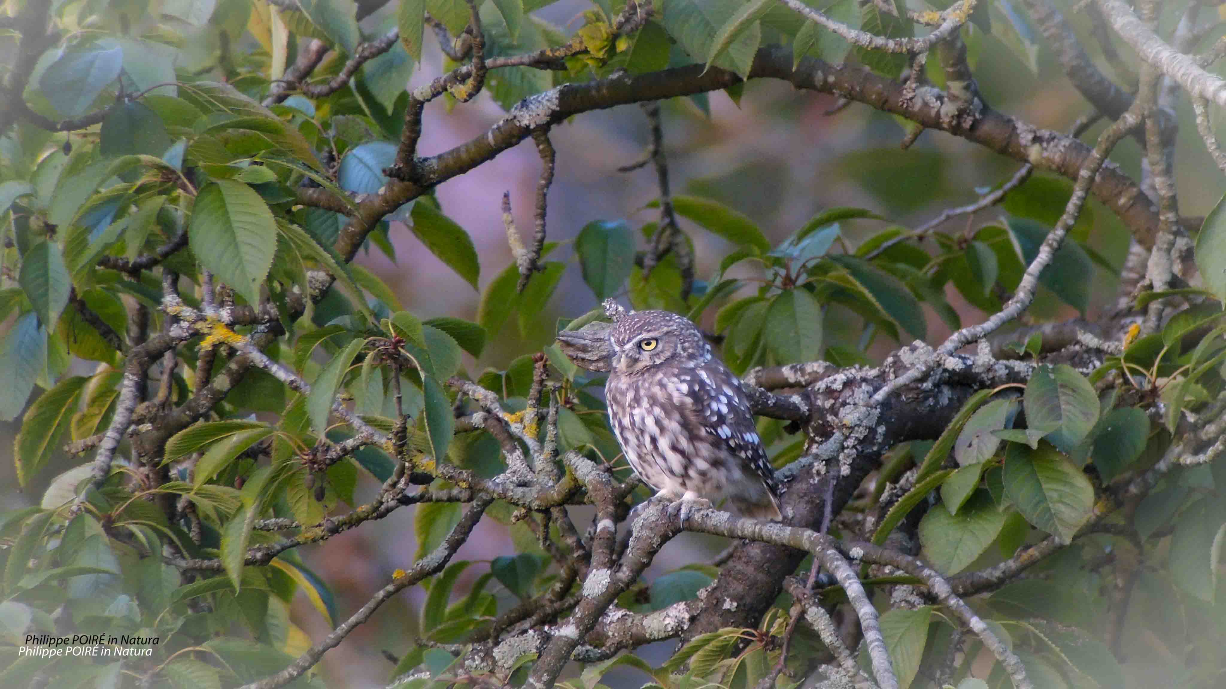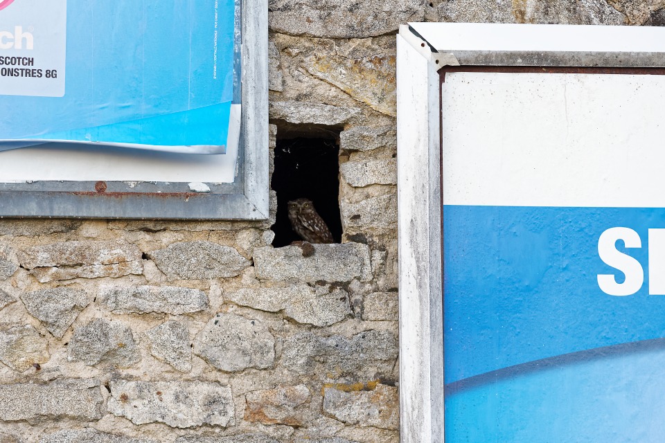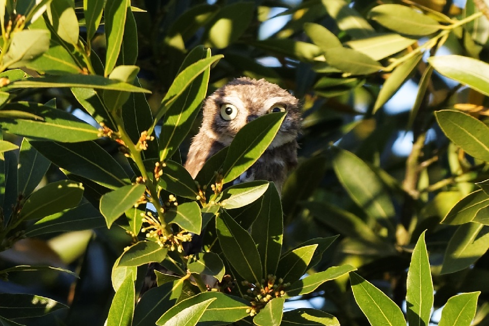 Chevêche d’Athéna jouant à cache-cache