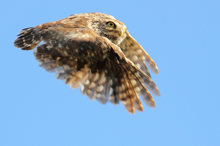 Chevêche d’Athéna sous-espèce vidalii en vol