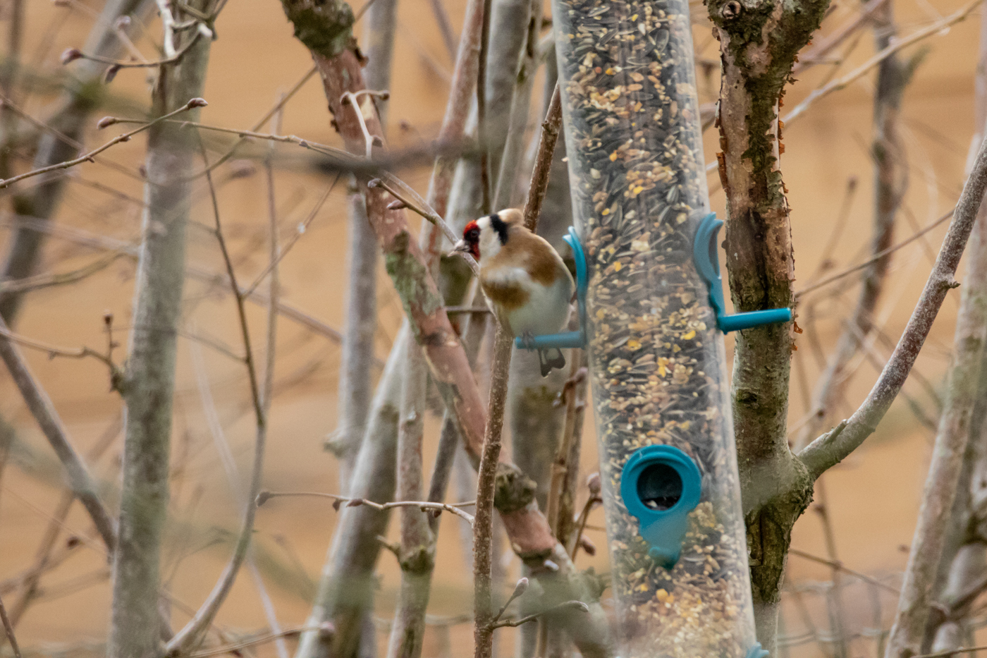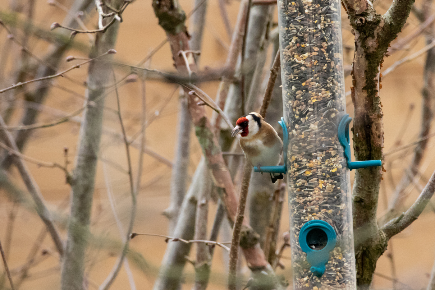 Photo prise le 16/01/2020. Les chardonnerets sont des habitués quotidiens de nos mangeoires.