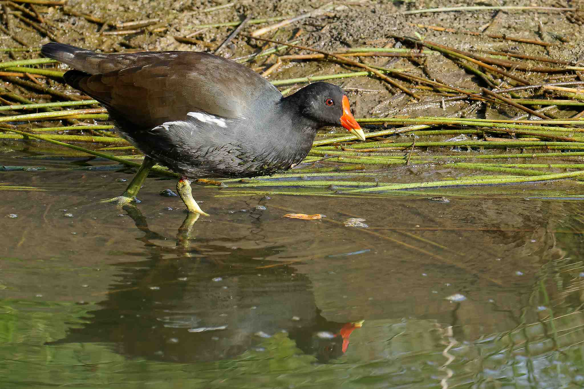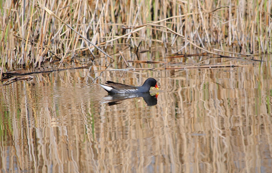 Gallinule poule-d’eau et son reflet