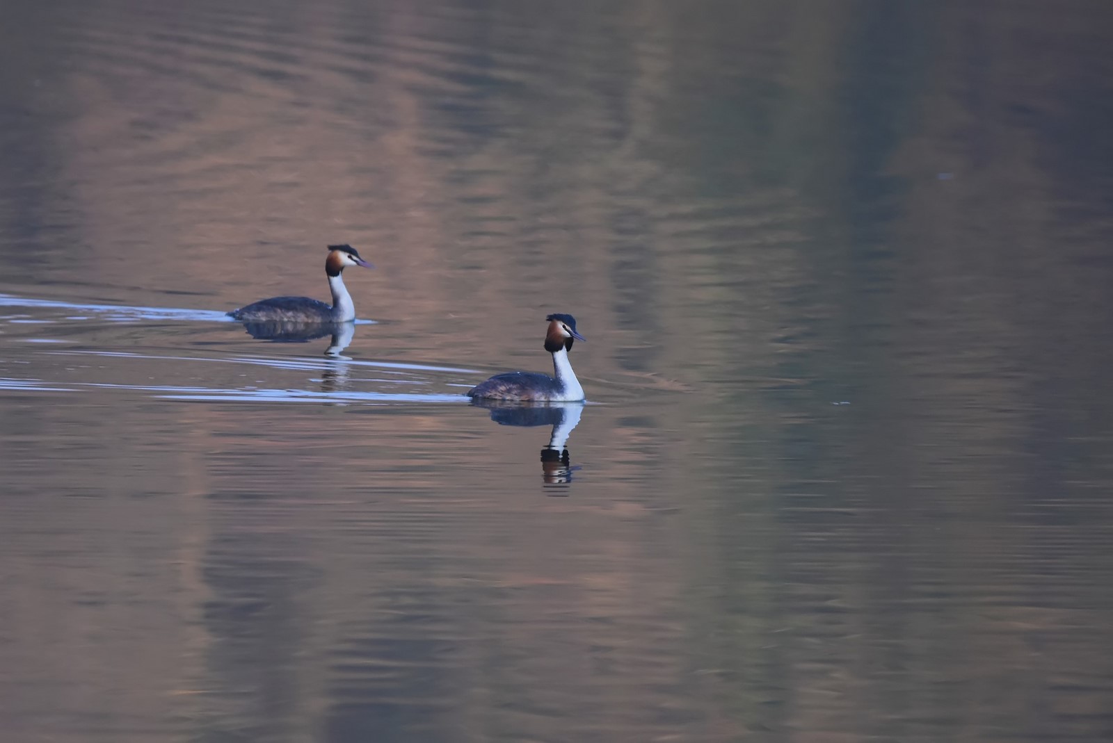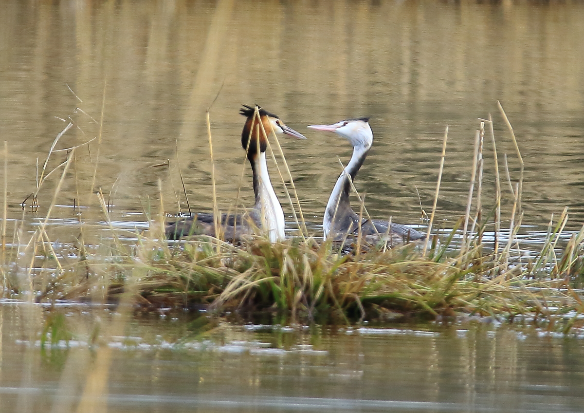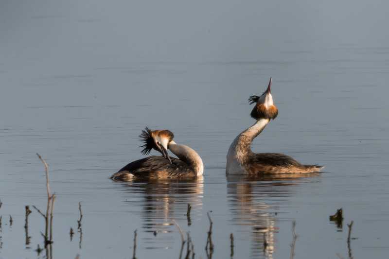 Photo prise le 03/03/2022. Un couple se forme. Lire Parade des Grèbes huppés : postures, danses et cérémonies.