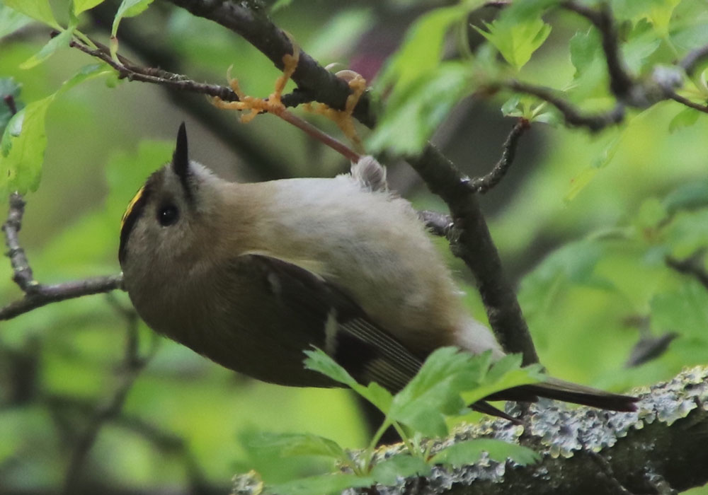Roitelet huppé en quête de nourriture