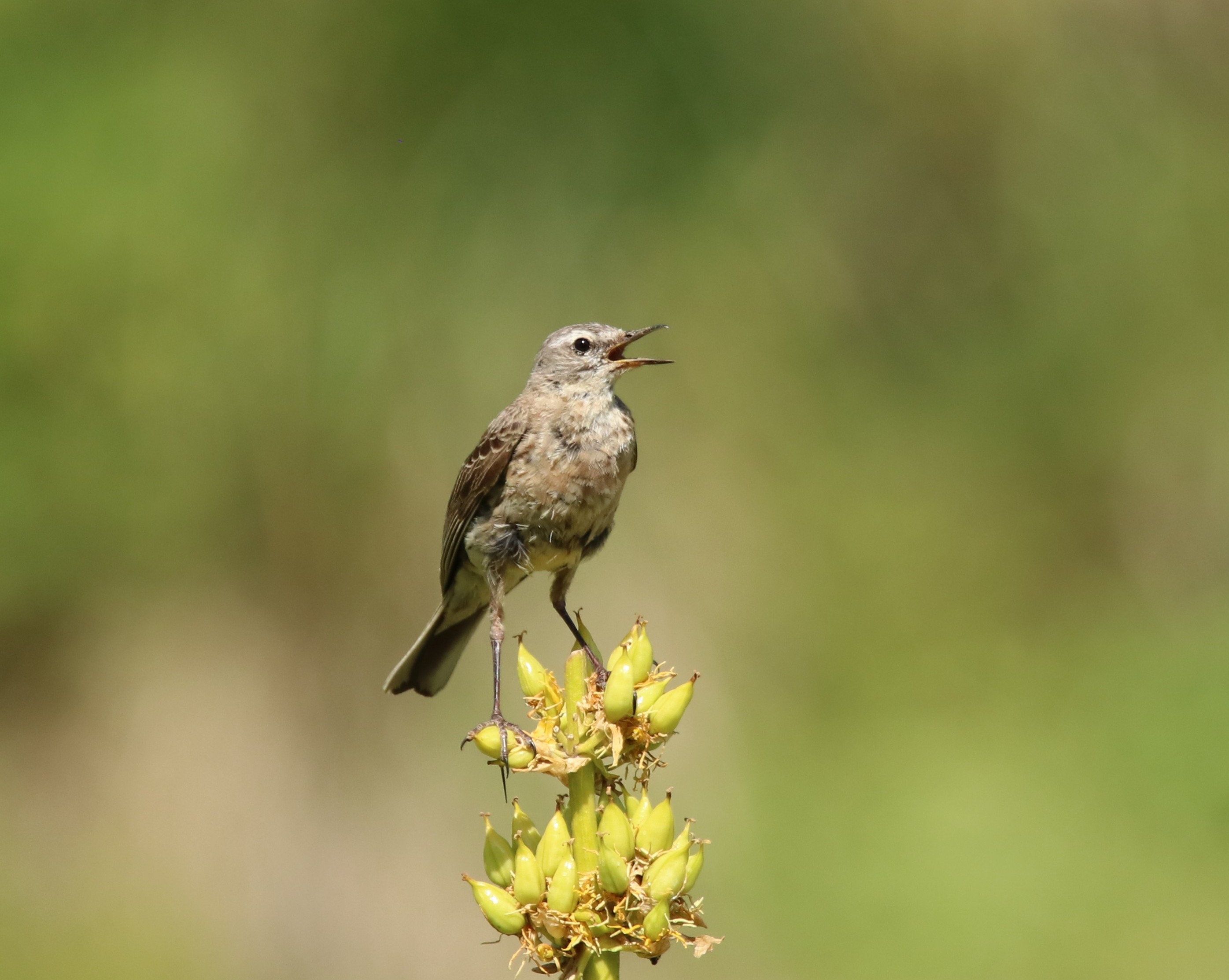 Pipit spioncelle en plumage usé. Photo prise le 01/08/2019. Lire a href="https://www.ornithomedia.com/magazine/observer-france/decouverte-oiseaux-massif-sancy-puy-dome-01809/" target="_blank">À la découverte des oiseaux du massif du Sancy (Puy-de-Dôme)et a href="https://www.ornithomedia.com/pratique/identification/differencier-pipits-maritime-dont-sous-espece-littoralis-spioncelle-farlouse-hiver-01014/" target="_blank">Différencier les Pipits maritime (dont la sous-espèce littoralis), spioncelle et farlouse en hiver.
