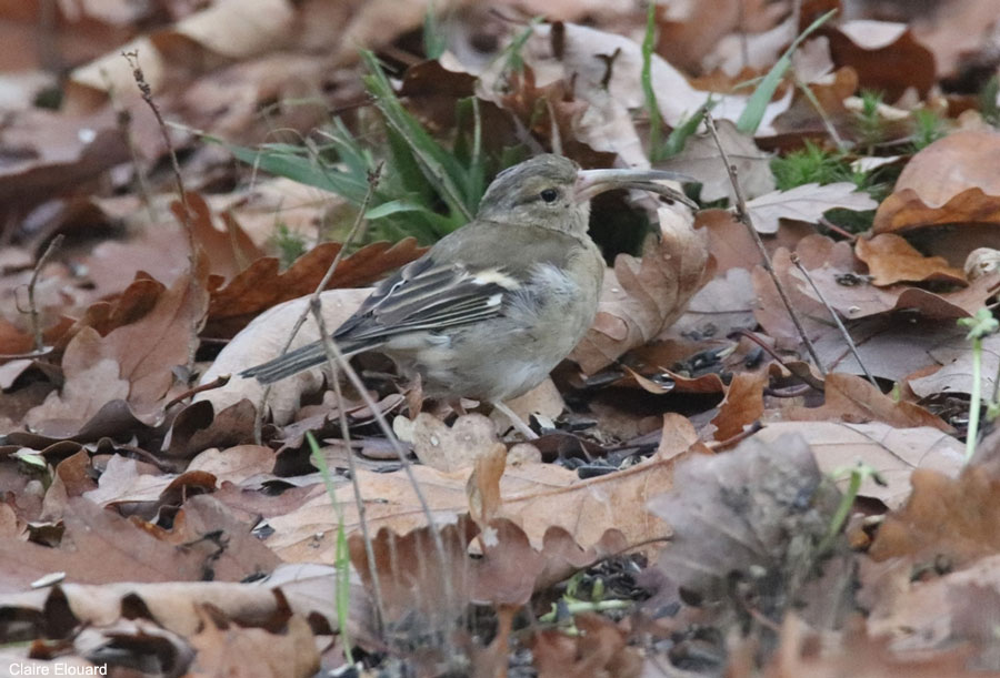 Photo transmise le 27/11/2020 par Claire Elouard. Cette femelle est présente depuis au moins le début du mois de novembre; malgré son bec démesuré, elle arrive à survivre et parvient à manger des graines de tournesol (laborieusement) et à boire. Lire Un Geai des chênes avec un bec étonnant observé en Bretagne, Une Mésange bleue au bec anormal observée sur une terrasse et