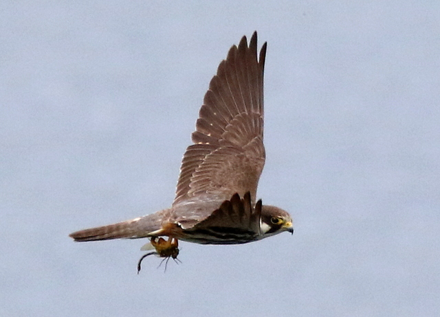 Faucon hobereau ayant attrapé une libellule