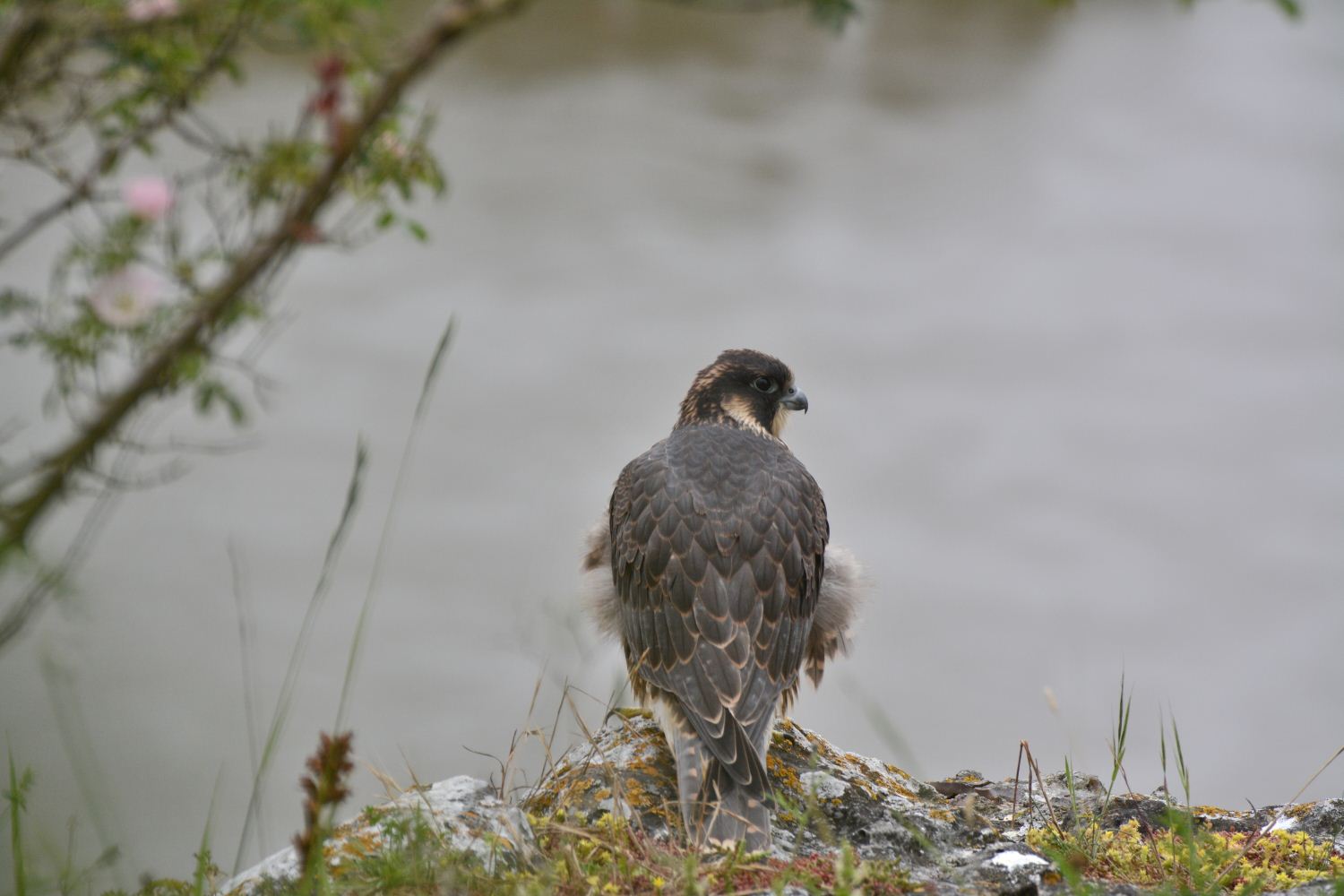 Photo prise le 14/06/2016. Un jeune Faucon pèlerin presque émancipé, photographié au sommet d'une falaise calcaire de la Seine.