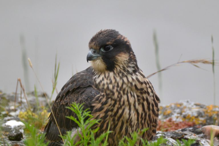 Portrait d'un jeune Faucon pèlerin, photo prise à l'affût le 17/06/2016 au sommet d'un promontoire rocheux.
