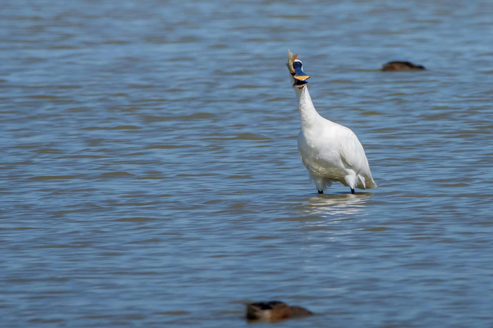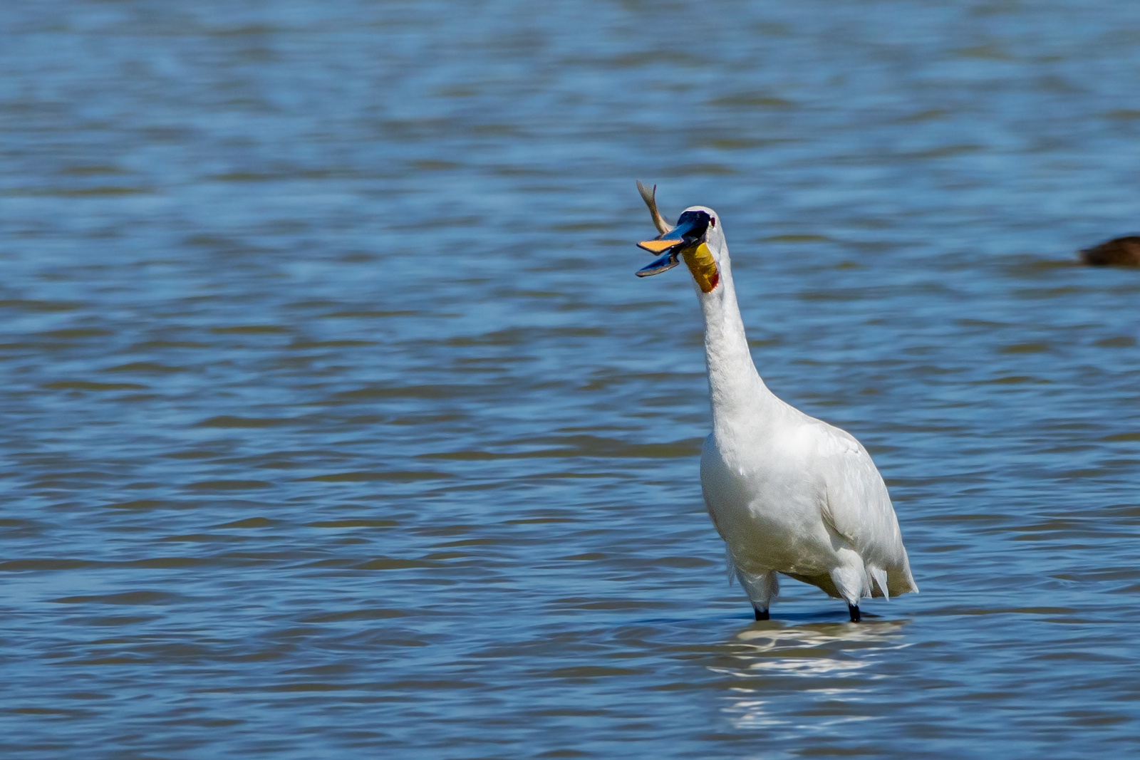 Spatule blanche avalant un poisson
