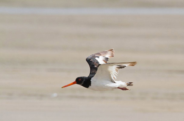 Huîtrier pie en vol