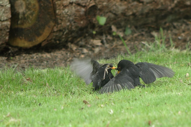 Photo prise le 23/04/2017. Conflit territorial entre ces deux merles.