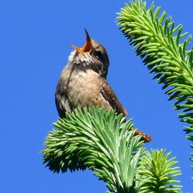 Troglodyte mignon chantant à tue-tête . Photo prise le 17/06/2017.