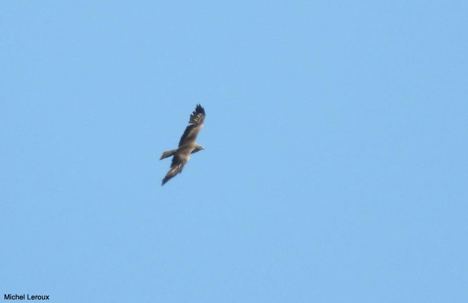 Photo prise par Claude Daussin le 18/05/2020. Trois Faucons kobez observés depuis le 15 mai sur le site. Lire Comment peut-on expliquer les afflux printaniers de Faucons kobez ?.