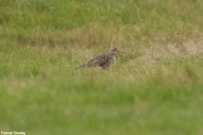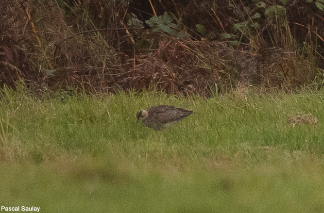 Photo prise le 12/10/2019 par Monsieur Saulay Pascal . Découverte le 12/10 par Jean-Philippe Siblet, vue en vol et posée dans le secteur du fort du Kernic (téléchargez notre carte des bons sites d'Ouessant). Limicole des prairies nord-américaines très rare en Europe (moins de 10 données en France depuis 1965) de taille moyenne, ressemblant aux courlis mais avec un bec court et droit.