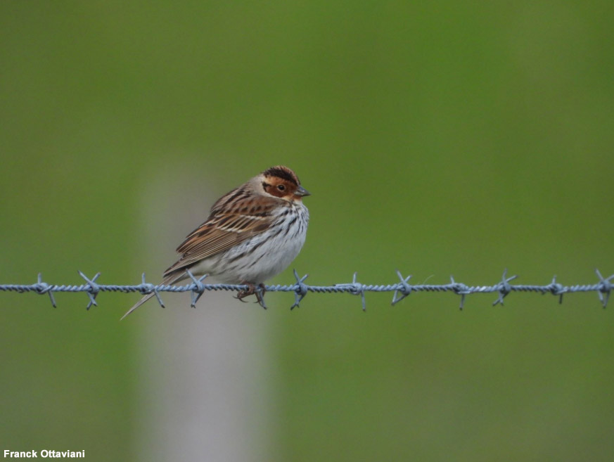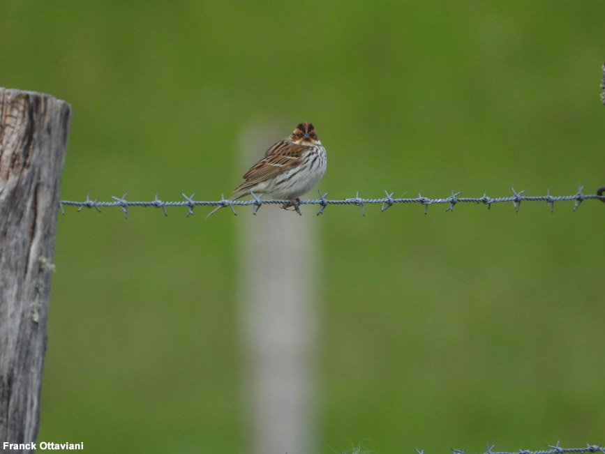 Photo prise le soir du 06/05/2019 par Monsieur Ottaviani Franck le soir alors que je photographiais des Tariers pâtres (Saxicola rubicola) : il est venu se poser sur la clôture, il est resté une dizaine de secondes puis s'est envolé. Lire Distinguer les Bruants nain et des roseaux.