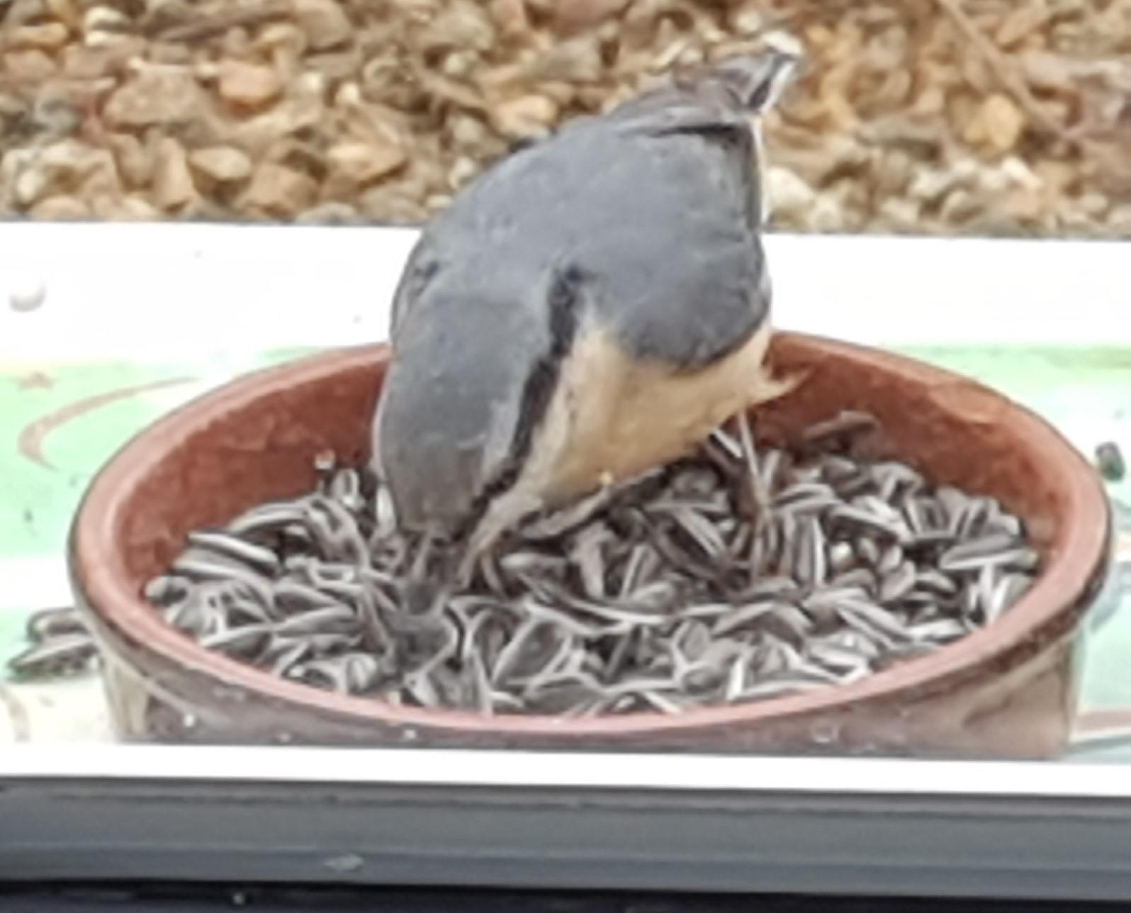Photo prise le 03/04/2019 par Madame haie Marie-José . Il vient manger des graines de tournesol.