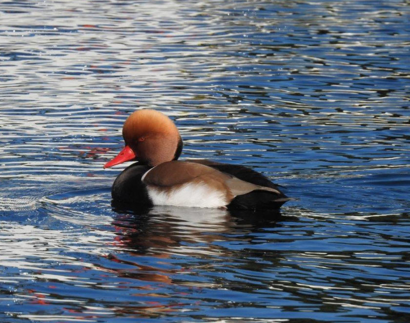 Photo prise le 27/02/2019. Notez le ventre ocre de certains oiseaux : leurs plumes auraient été colorées par l'oxyde de fer et l'alumine des eaux d'Afrique de l'Ouest, ou peut être par des micro-organismes en Europe. Lire Canards pilets au ventre ocre : ouvrez l'oeil !.
