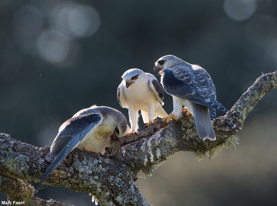 Photo prise le 2/05/2019 par Monsieur FASOL Marc. L'Élanion blanc est un petit rapace blanc, gris et noir facile à identifier. En Europe, il ne niche que dans la péninsule ibérique et dans le sud-ouest de la France, et ponctuellement ailleurs (lire Nidification de l'Élanion blanc dans le Rhône en 2005). Sa population est en expansion en France (premier cas de reproduction confirmé en 1983, de 113 à 124 couples en 2012), mais aussi dans le reste de l'Europe et au Moyen-Orient (lire L'Élanion blanc poursuit sa forte progression en Europe et au Moyen-Orient). Comme c'est le cas de beaucoup d'espèces de rapaces, le nombre de jeunes quittant leur nid dépend de l'abondance des proies disponibles, en l'occurrence les micromammifères, et le printemps 2019 semble avoir été bon pour l'élanion en Espagne (en tout cas en Estrémadure et en Castille-La-Manche), contrairement aux deux printemps précédents, grâce à l'abondance des rongeurs.