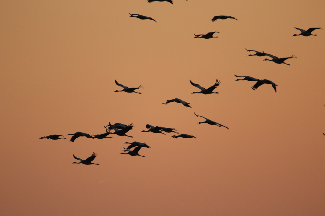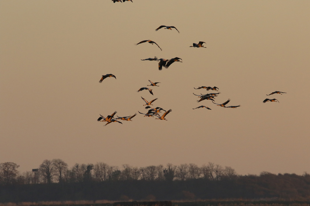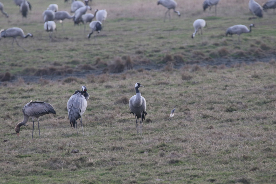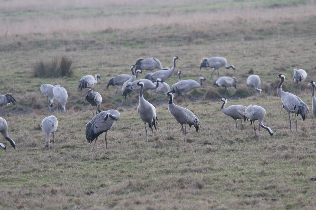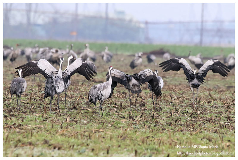 En fin de matinée, le ciel est encore bien couvert mais l'excitation monte dans certains groupes. Visitez mon blog Birdwatching and Photography. Lire aussi Observer les Grues cendrées dans la réserve nationale de chasse d'Arjuzanx, Observer les oiseaux du lac de Puydarrieux. Et pour aller observer les grues en Champagne, la carte Le pays des Grues cendrées, le lac du Der et les lacs aubois vous sera très utile.