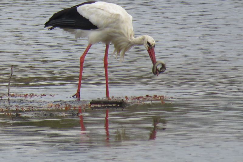 Cigogne blanche pêchant