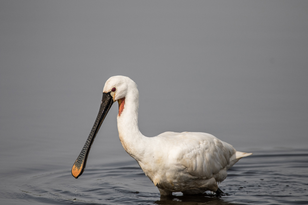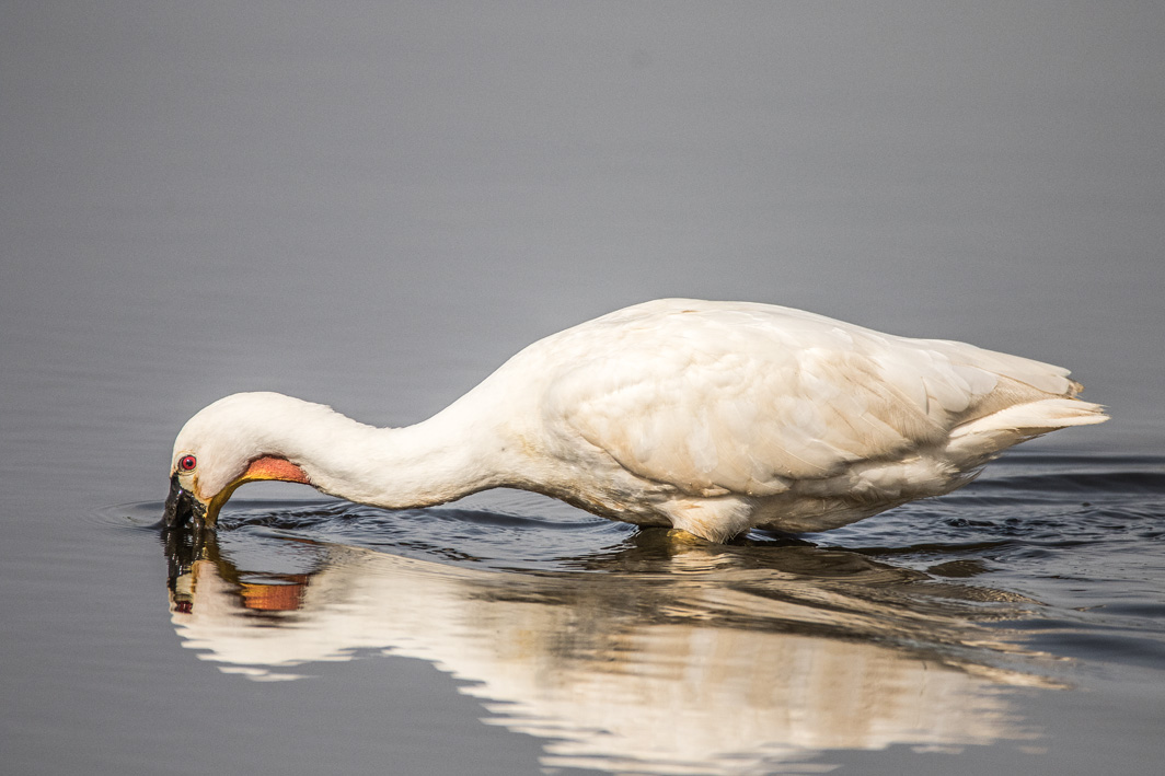 Spatule blanche avalant un poisson