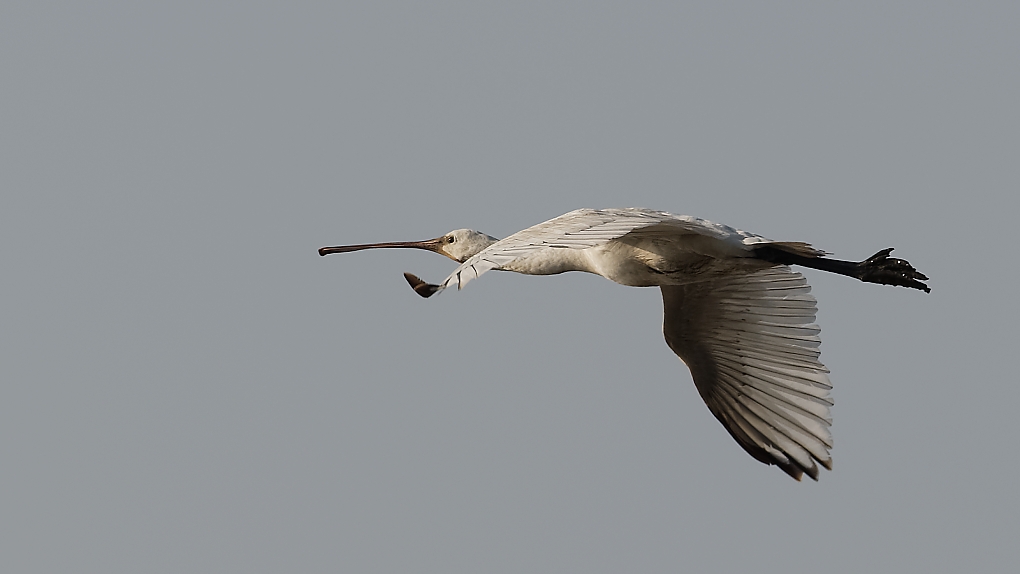 Spatule blanche en vol