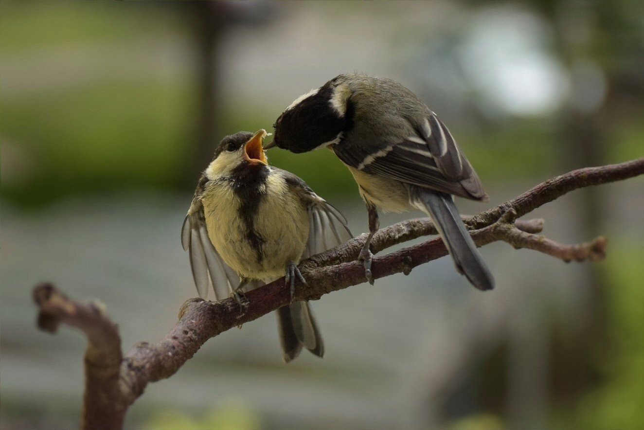 Jeune mésange charbonnière, proche du sevrage, nourrie par l'un de ses parents à ma fenêtre. D'autres photos sont disponibles sur http://yalakom.org/.