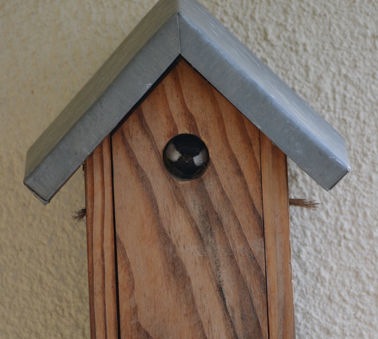 Photo transmise le 25/03. En plein boulot, "home staging" et aménagement très tendance dans mon (leur) nichoir.