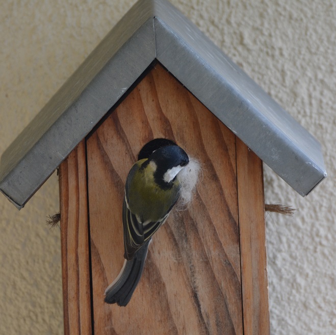 Photo transmise le 25/03. Avant hier-matin, j'ai découvert que les travaux avaient commencé dans le nichoir sur ma terrasse : quel bonheur !!!!