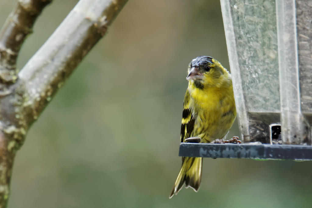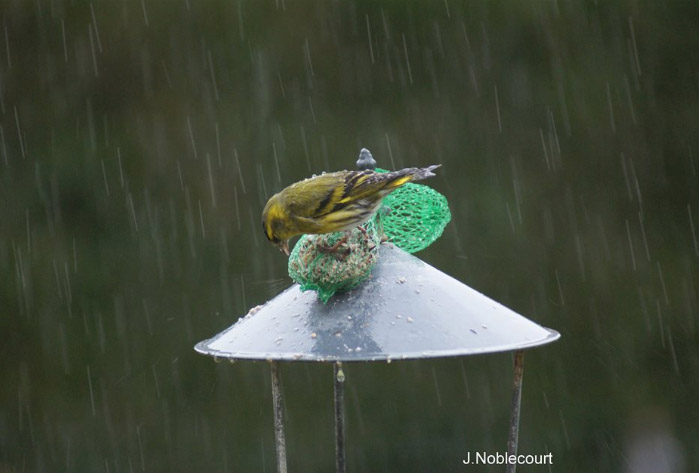 Photo prise le 04/03/2016; Aucun autre oiseau n'a pu s'approcher de la mangeoire pendant le repas de Monsieur Tarin.