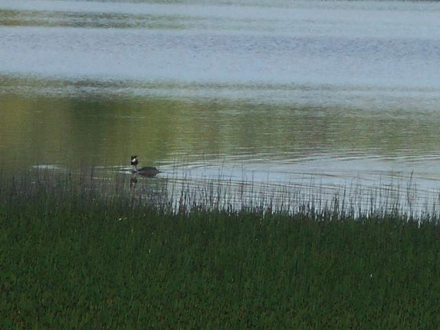 Photo prise le 06/05/2018. Couple de grèbes, la femelle est au nid.