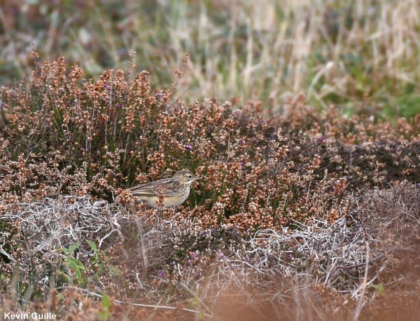 Photo prise le 20/10/2018. Deux oiseaux (dont un immature) ont été découverts le 18/10 à Porz Doun (téléchargez notre carte de l'île d'Ouessant) et étaient encore présents le 23/10 au moins. Notez le dos fortement strié et le coin blanc des rectrices externes de la queue.