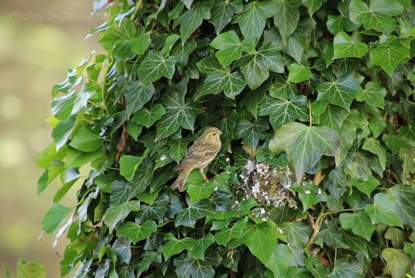 Serin cini nichant dans le lierre