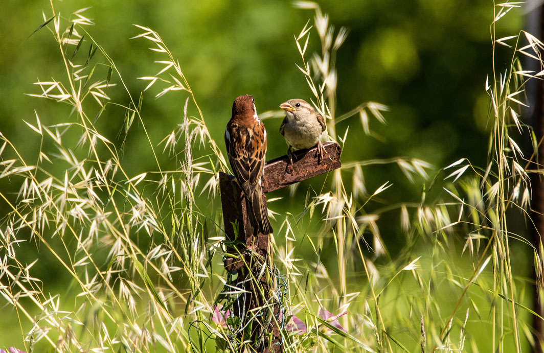Moineaux cisalpins mâle et juvénile