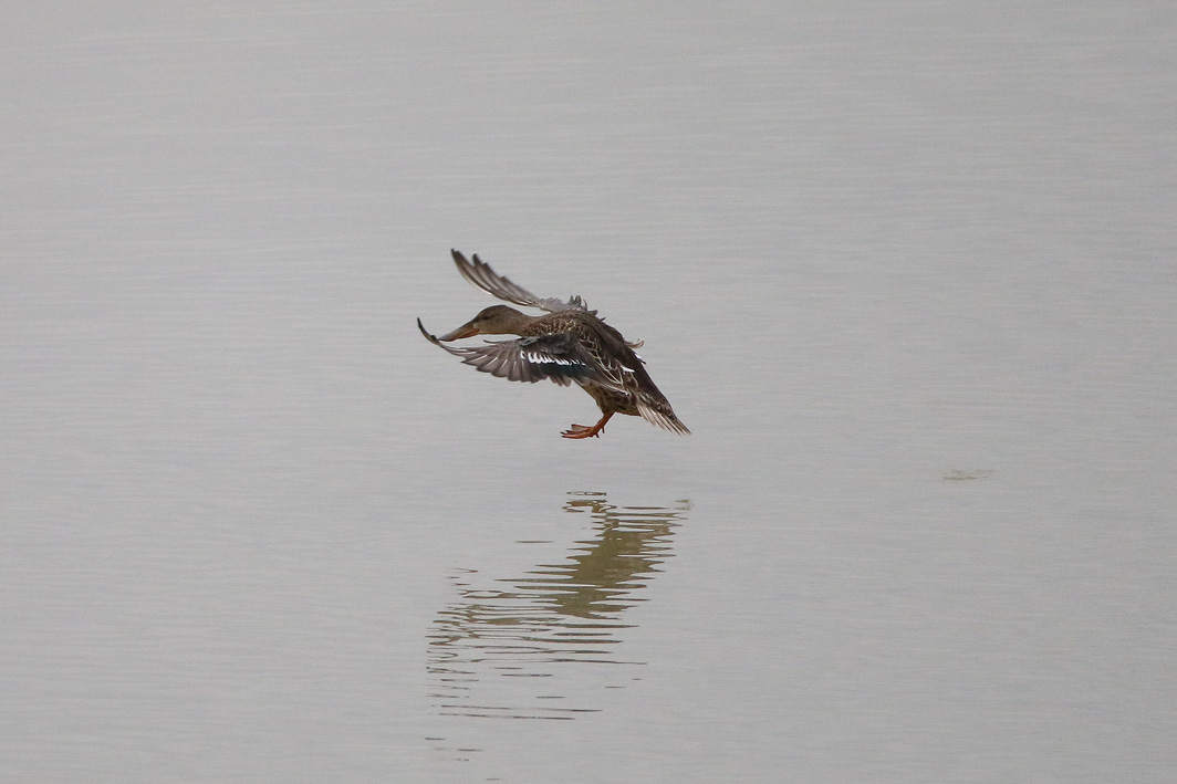 Canard souchet femelle se posant