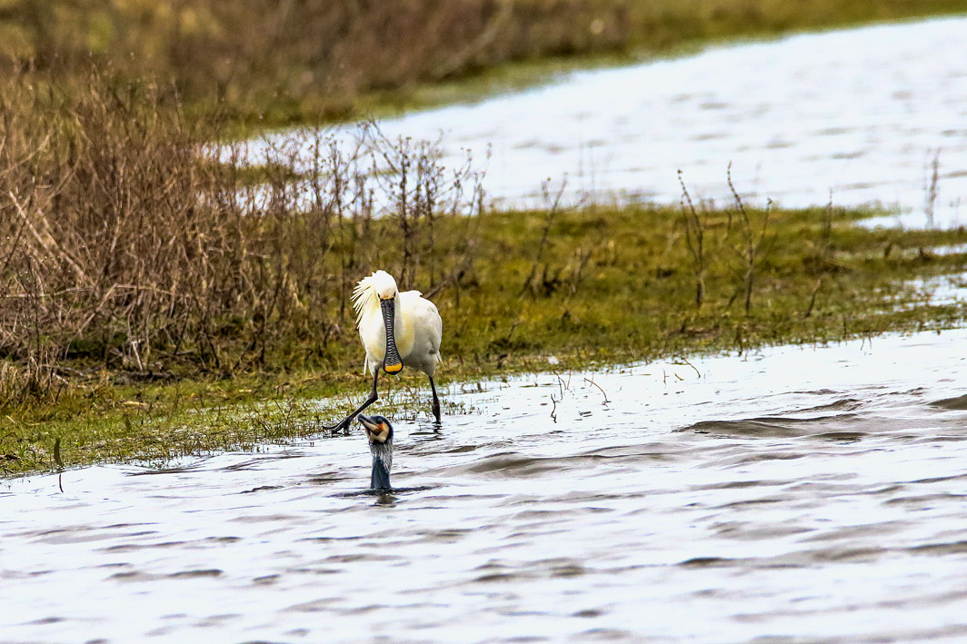 Spatule blanche nourrissant son petit en Grande Brière