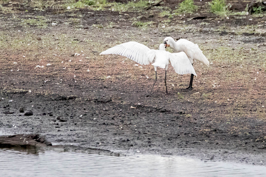 Spatules blanches adulte et juvénile